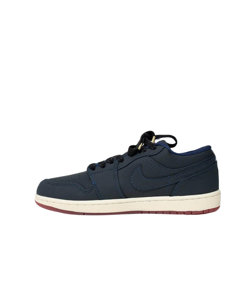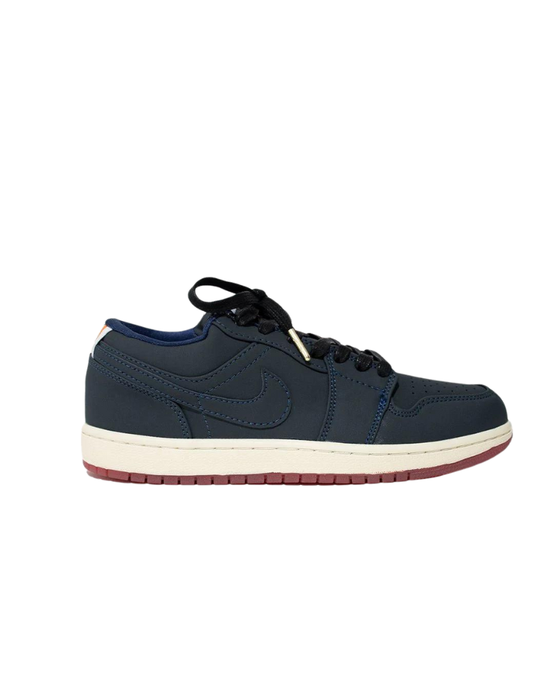 Jordan and Eastside Gold collaborate on these Air Jordan 1 Low sneakers, creating a unique take on the iconic silhouette. The laces are tipped in a gold-tone hue, whilst the outsole is crafted in red to represent the clay mud of a golf course.